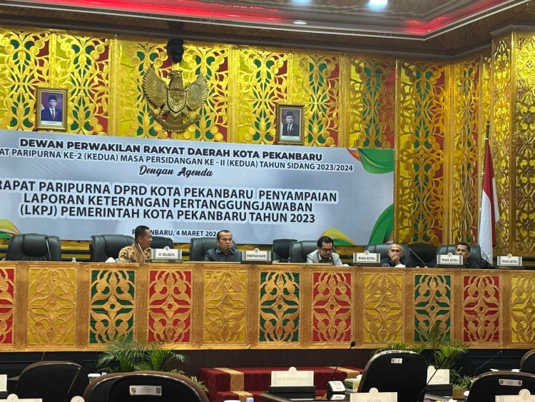 LKPj 2023 itu disampaikan melalui rapat paripurna bertempat di Ruang Rapat Paripurna Balai Payung Sekaki Gedung DPRD Kota Pekanbaru, Senin (4/3/2024) siang.
